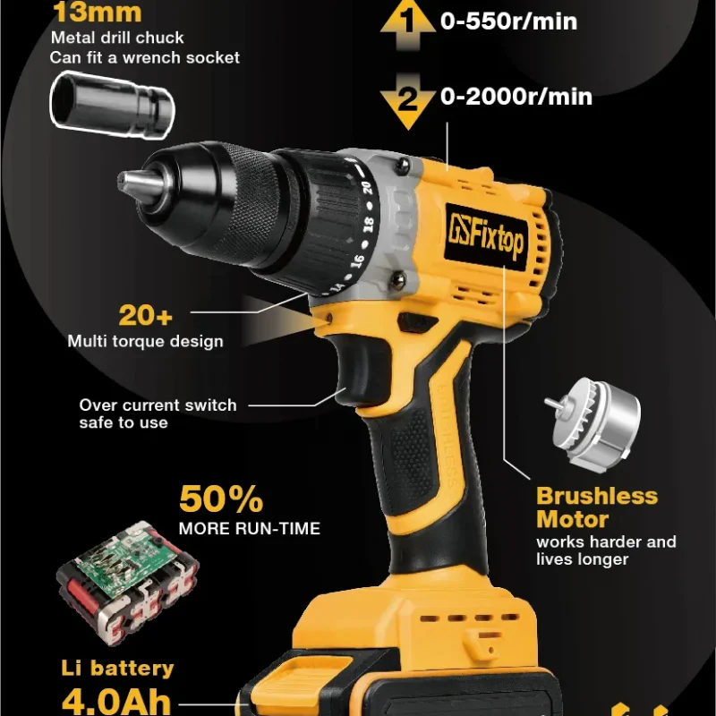1.Designed for professional-grade performance, 20v brushless lithium drill provides the power and speed needed for heavy-duty drilling and fastening applications.